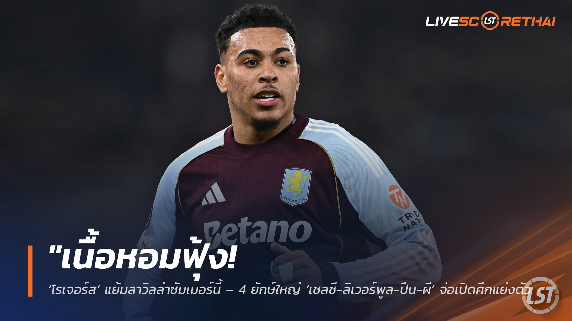 เปิดทางย้ายทีม: มอร์แกน โรเจอร์ส ตัวรุกฟอร์มร้อนแรงของ แอสตัน วิลล่า พร้อมพิจารณาทุกข้อเสนอในช่วงซัมเมอร์นี้ แม้เพิ่งจะเซ็นสัญญาฉับใหม่ยาว 6 ปีไปเมื่อเดือนพฤศจิกายนที่ผ่านมาก็ตาม