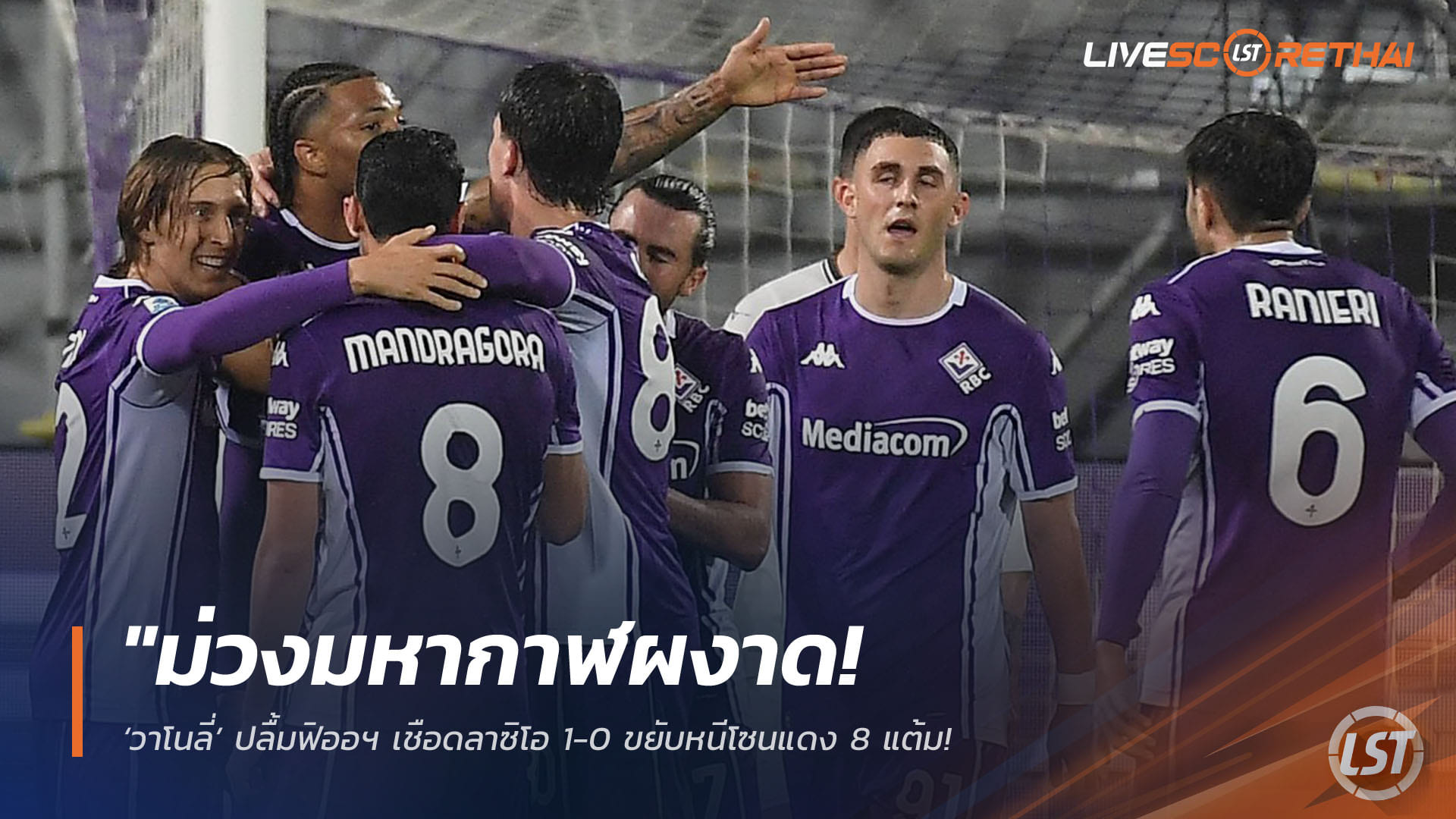"ม่วงมหากาฬผงาด! ‘วาโนลี่’ ปลื้มฟิออฯ เชือดลาซิโอ 1-0 ขยับหนีโซนแดง 8 แต้ม – ย้ำยังวางใจไม่ได้ ขอมุ่งสมาธิล่าตั๋วยุโรปต่อ"!
